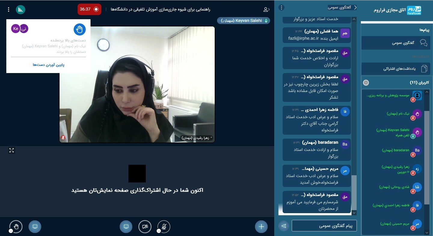 دومین جلسه میز پژوهشی «راهنمایی برای شیوه جاریسازی آموزش تلفیقی در دانشگاهها» به صورت مجازی به میزبانی موسسه پژوهش و برنامهریزی آموزش عالی و با مدیریت خانم دکتر زهرا رشیدی عضو هیات علمی گروه نوآوری آموزشی و درسی، دبیری خانم هما فضلی کارشناس مسئول گروه و حضور اعضاء برگزار شد.