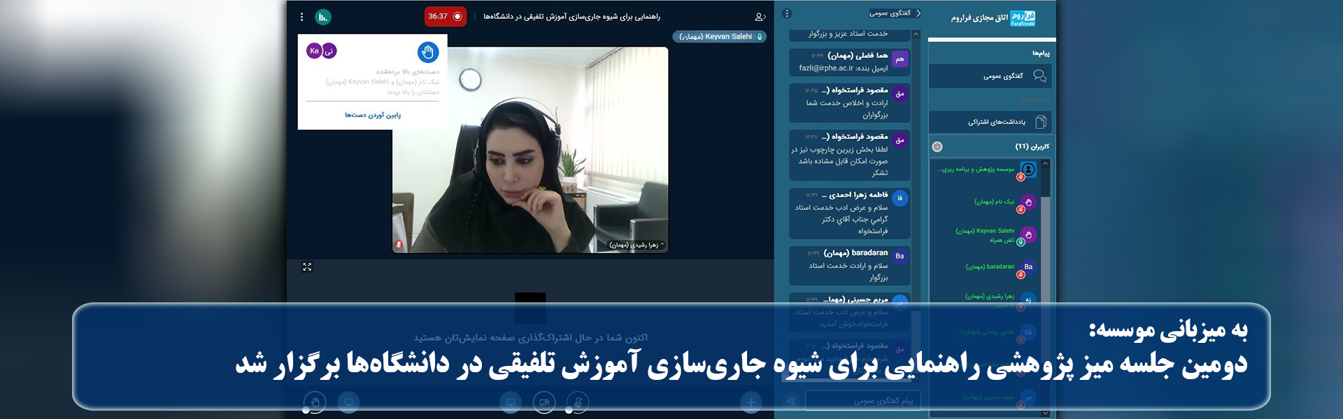 سومین جلسه میز پژوهشی راهنمایی برای شیوه جاریسازی آموزش تلفیقی در دانشگاهها به صورت مجازی به میزبانی موسسه پژوهش و برنامهریزی آموزش عالی و...